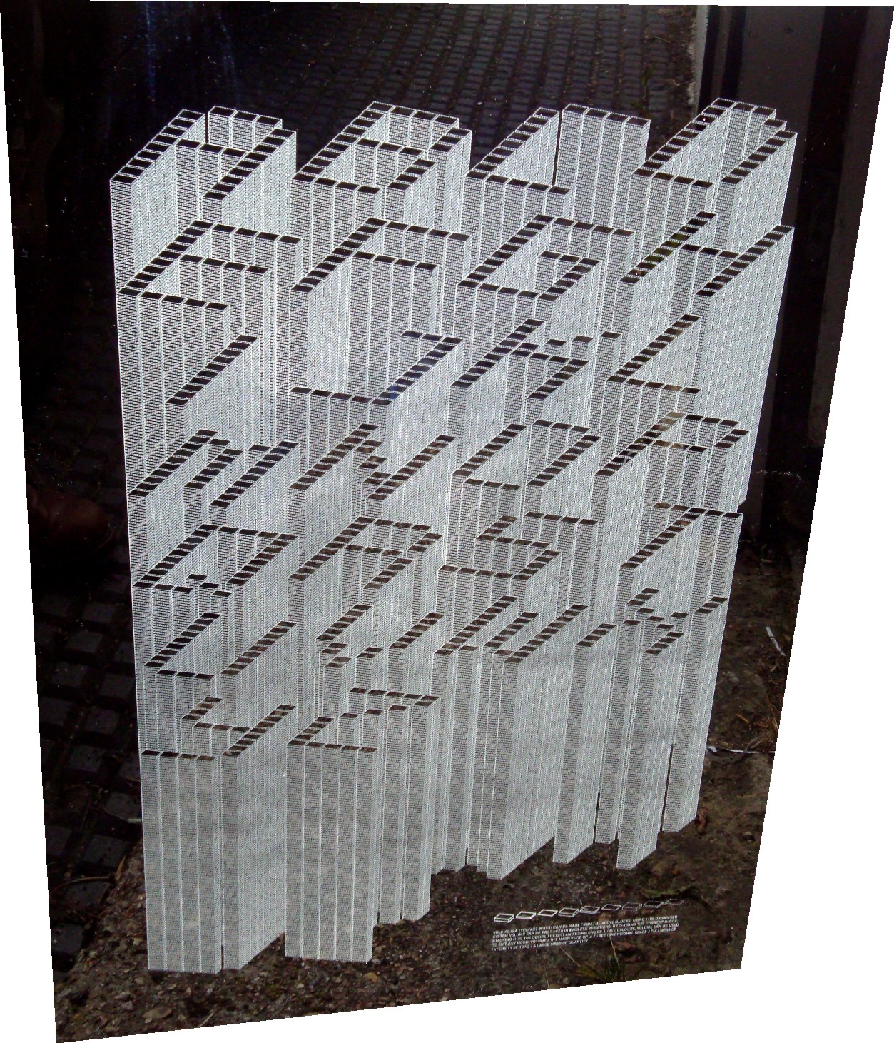 Laser engraved 'Radiance' Perspex With Mirrored Perspex/Acrylic, the black parts of the image are engraved on the back of the mirrored material, turning it to a frosted transparent,leaving the white parts of the image mirrored This was made for a video by 'Example' and can be seen here; http://www.youtube.com/watch?v=5IYf42qKm5s at around 2 mins 40 secs